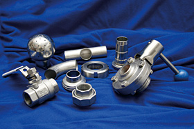 » Edelstahlrohre und -armaturen sowie Dichtungen » Prozessbehälter (Edelstahl) zur thermischen Produktbehandlung » Versorgungstechnik    - Heißwasser- bzw. Dampferzeugeranlagen    - Druckluftanlagentechnik    - Kälte- bzw. Eiswasseranlagen » Mess- und Regelgeräte für Druck, Durchfluss sowie Temperatur » Behälter in verschiedenen Größen und Ausstattungen aus Edelstahl bzw. Kunststoff » Verpackungstechnik für flüssige und pastöse Lebensmittel » Kühllager- und Transportbehälter » Montageleistungen der technologischen Ausrüstungen, der Edelstahlrohrsysteme sowie    -armaturen für Produkt und Medien » Kreisel- sowie Misch- und Dosierpumpen  stationär bzw. fahrbar » Betriebs- und Kühlraumtüren, Waschtische bzw. -becken, Regale, Bodenentwässerung aus    Edelstahl, Edelstahlhorden und -wagen, Gitterkabelbahnen » Labortechnische Ausrüstungen bzw. Messgeräte zur Qualitätsüberwachung » Ergänzungs- und Ersatzteile für verschiedene Ausrüstungen » Handel mit Gebrauchtmaschinen